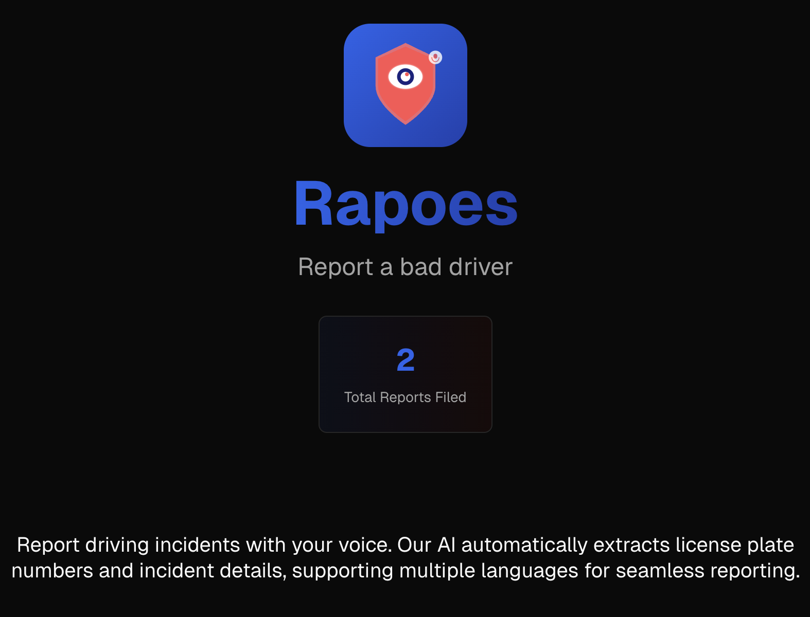 An app for reporting bad drivers on the road using AI to transcribe verbal reports. It stores and reports numberplates of bad drivers and provides analytics on the most common types of bad driving behavior.